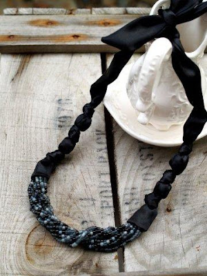 Today it’s my turn!!! Head over to her site for one last chance this year to win an Anthro Limitless Strands Necklace (tutorial here) – this time with beautiful black satin ribbon and black and gray seed beads!!