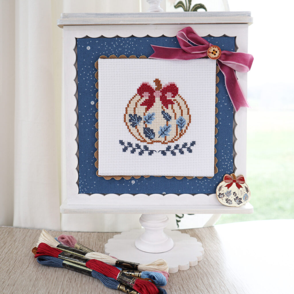 I finished this month’s cross-stitch design on Dainty Daisy Denim; the color blends so great with the floss colors for the month. You can find my finishing instructions for the cross stitch patterns here.