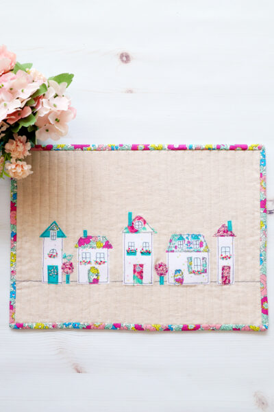 This Liberty and Linen Neighborhood Mini Quilt is a fun, new version of my Black and White Neighborhood Mini Quilt! We recently did a sew along with this cute mini in my Facebook Group and it was so fun to sew up these little quilts all together. My original version of the Mini Neighborhood quilt was all black and white…