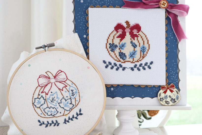 We have another fun month in our Needle Minder Club – it’s time for our November projects reveal! Our theme this month is this gorgeous Blue Willow Pumpkin. The navy and rose colors are inspired by Blue Willow plates and dinnerware, and I had so much fun designing this month’s set. Our pumpkins have pretty fall leaves in shades of…