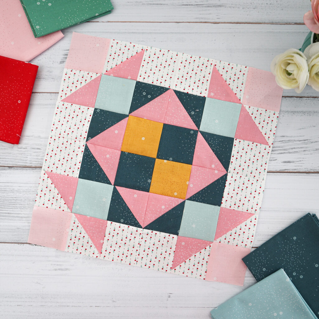 I love Sandy’s little tiny tulip low volume. It’s so classic American Jane! For this block, I used my Dainty Daisy Stargazer, Peony, Honey, Songbird, and Frosting.